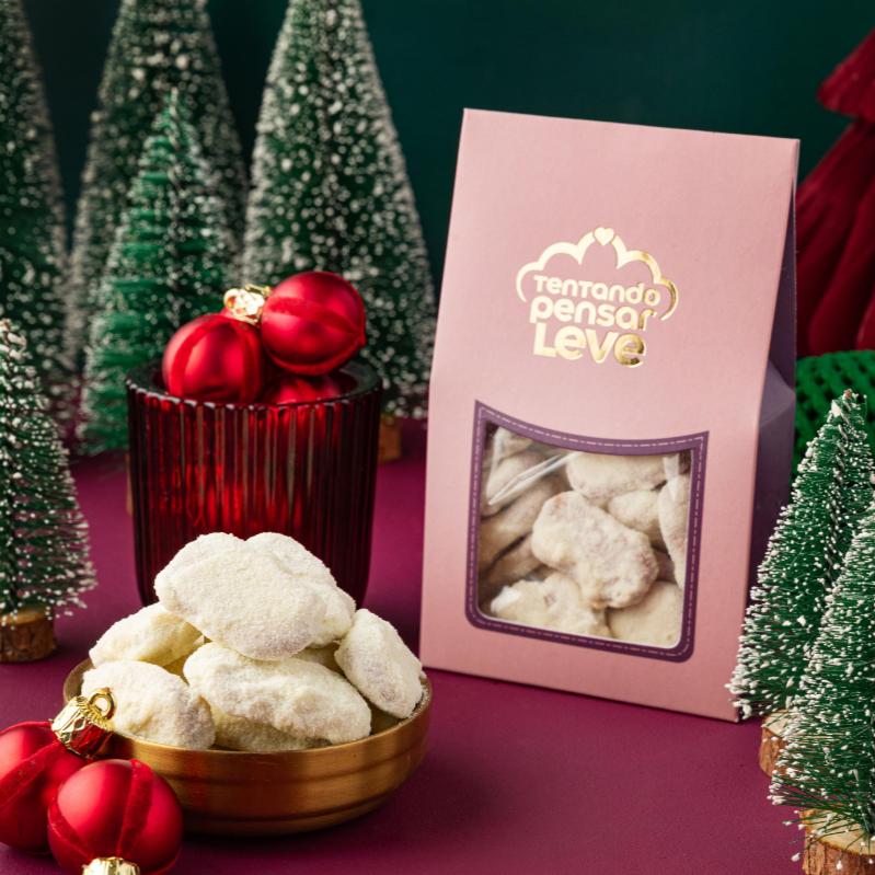 Combo com 3 unidades: embalagens cada uma contém 80gr de Biscoito artesanal de farinha de amêndoas, levemente adocicado e finalizado com açúcar e canela. Crocante, aromático e perfeito para acompanhar um café ou presentear.