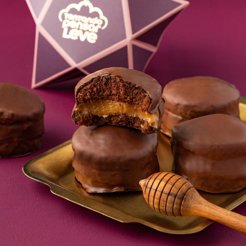Pão de mel recheado com doce de leite e cobertura de chocolate meio amargo. Um sabor que marcou nossa história e que vai conquistar você. A Aralice fundadora da T.P.L vendia pães de mel de porta em porta com sua cestinha, e hoje estamos aqui com previlégio de aparecer para você apresentando todo nosso cardápio com variedades que vão te agradar.90g