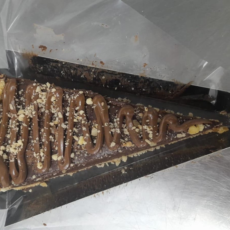 Camadas molhadinhas de bolo branco, recheio cremoso de brigadeiro de leite ninho, coberto com uma crosta crocante de Nutella. Peso médio 1Kg.