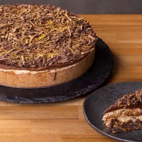 Novidade: Agora nossa torta vem com uma Deliciosa massa de biscoitos, massa de chocolate, generosa camada de chocolate ao leite e uma fina camada de chocolate levemente meio amargo. Atenção! Peso médio da fatia 165gr.