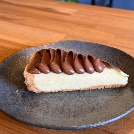 "A cheesecake ""nua"", sem calda, é uma sobremesa simples e elegante que destaca os sabores naturais e a textura cremosa da cheesecake. Com uma base crocante de biscoito que contrasta com o recheio macio e sedoso de queijo cream cheese, cada garfada é uma experiência de sabor puro e reconfortante. A ausência de calda permite que os sabores da cheesecake sejam o centro das atenções, proporcionando