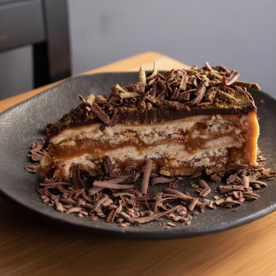 A Torta da Vó é uma verdadeira delícia caseira. Com camadas intercaladas de biscoitos, doce de leite e creme, essa torta é uma explosão de sabores e texturas. Para deixar tudo ainda mais especial, ela é finalizada com uma generosa camada de ganache de chocolate e raspas, que trazem um toque de intensidade e beleza à sobremesa.