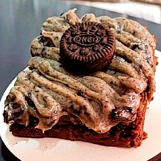 Fatiamania 120g - fatia de Brownie com cobertura de oreo caseira,finalizado com um mini oreo - 130g