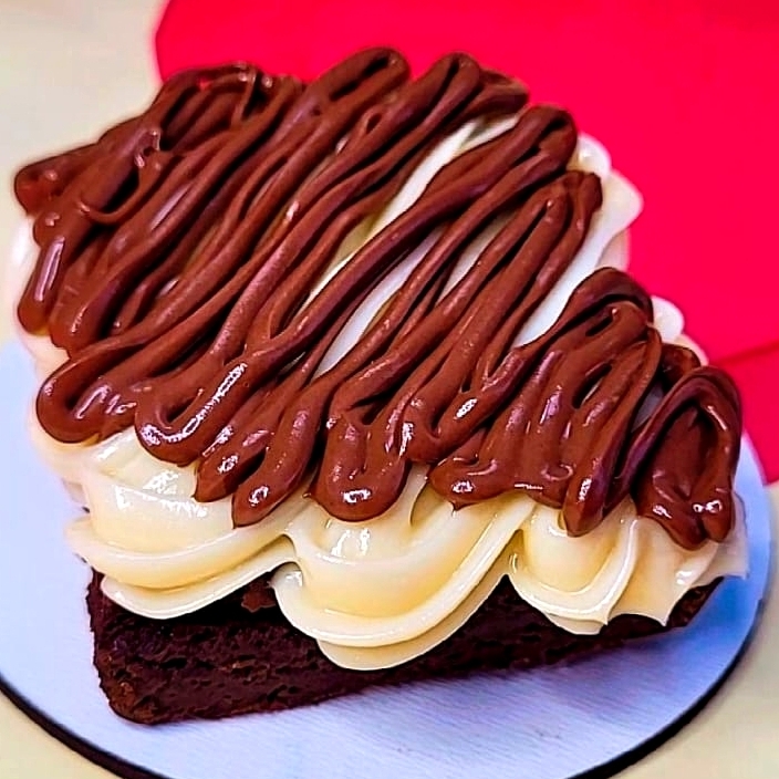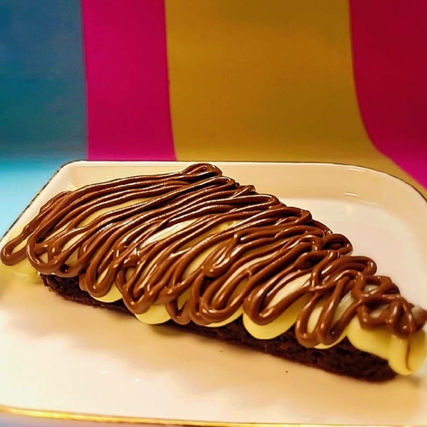 Fatia de Brownie 140g - Brownie com casquinha uma explosão de chocolate nanmassa, com cobertura de ninho caseirome e Nutella Original. 130g
