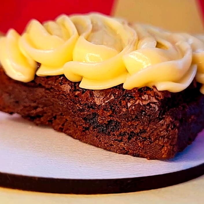 Brownie Fatia 120g – Ninho caseiro e cremoso. Uma explosão de sabor! Brownie com casquinha , recheado com creme de Ninho caseiro bem cremoso. Uma fatia que derrete na boca e conquista no primeiro pedaço. 💛🍫 - 130g