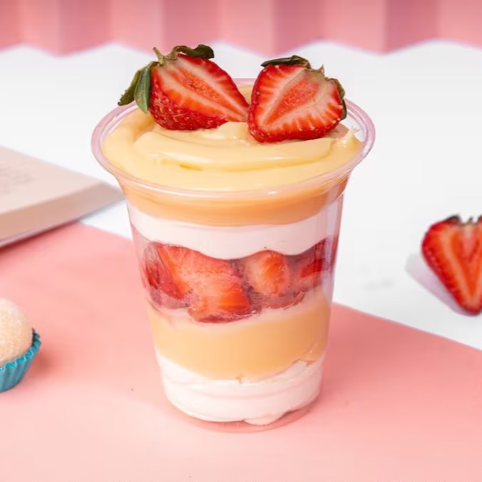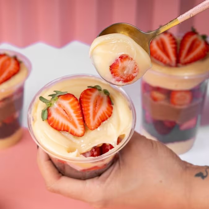 Chantilly suave, suspiros crocantes e morangos frescos, leve e doce no ponto ideal.