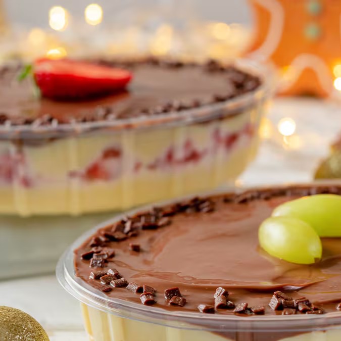 O Natal merece um sabor único: nosso Bombom na Travessa com seu recheio de brigadeiro de leite Ninho, frutas fresquinhas e selecionadas finalizado com uma ganache de chocolate nobre e granulé. Uma obra-prima natalina, tamanho especial para tornar seu momento ainda mais especial.