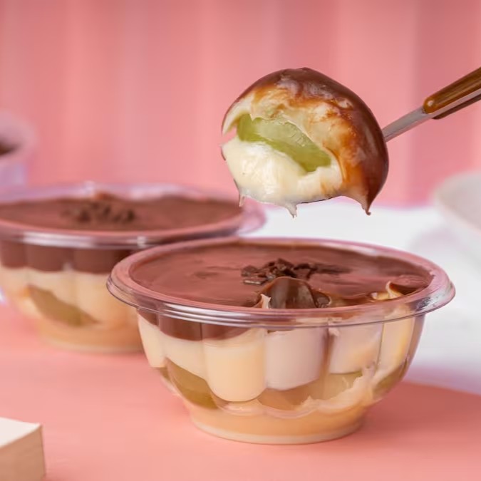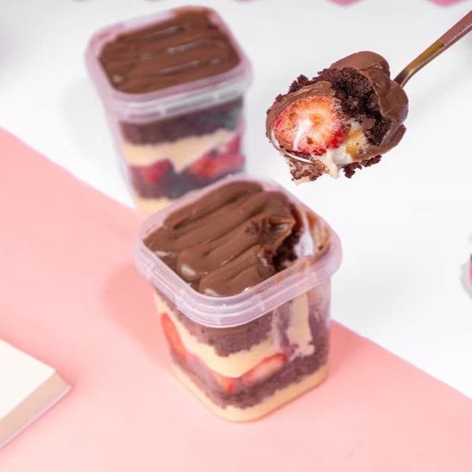 Duas camadas de brigadeiro cremoso e uma mousse suave de Leite Ninho, harmonizados com a doçura dos morangos frescos. Sabor irresistível em cada colherada!