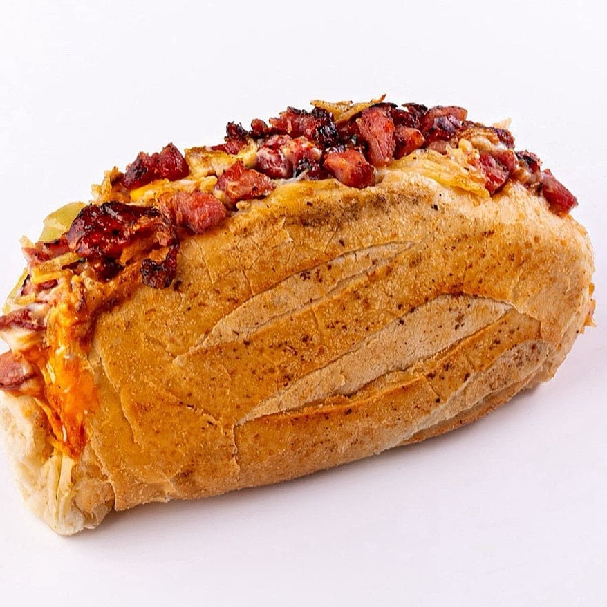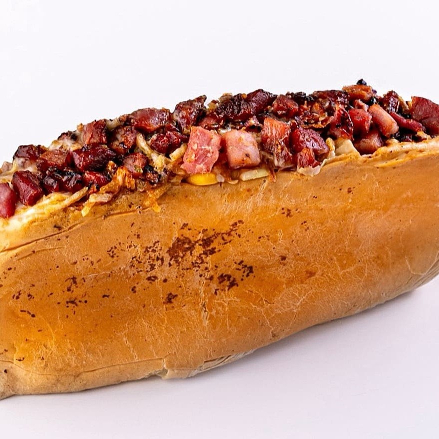 Pão de banha recheado com 3 salsichas Sadia, purê de batata cremoso, maionese, milho verde, repolho, batata palha crocante, vinagrete fresco, cheddar derretido, requeijão e ketchup. Um dogão completo, generoso e cheio de sabor!