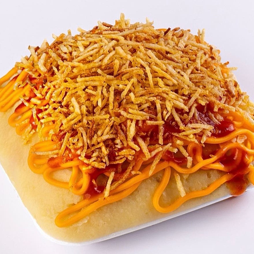 Pão de banha recheado com 2 salsichas Sadia, purê de batata cremoso, maionese, milho verde, repolho, batata palha crocante, vinagrete fresco, cheddar, requeijão e ketchup. Um dogão completo, generoso e cheio de sabor!