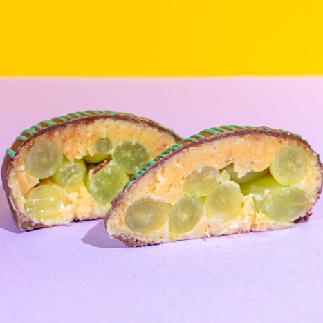 Pao De Dog Tradicional, Recheado com creme epedaços de pistache, chocolate branco com borda de choco branco e pedaços de pistache
