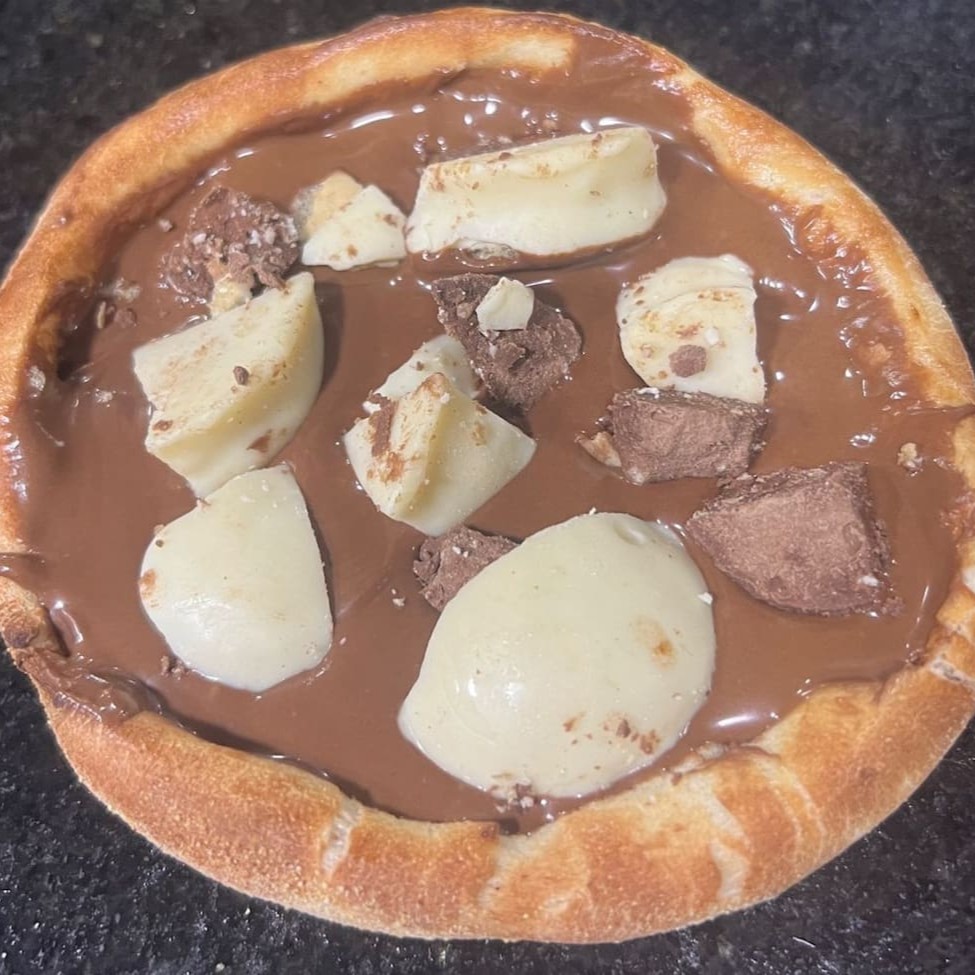 Na compra de uma pizza ganhe um broto doce de chocolate