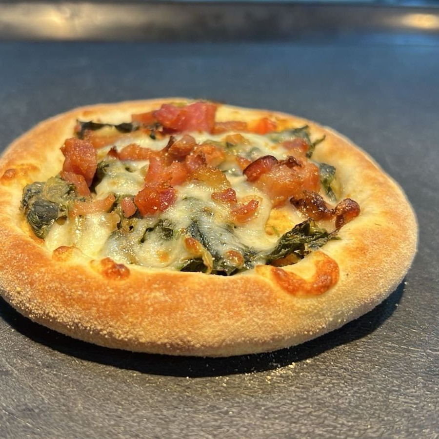 Pizza broto massa tradicional, metade sabor Big Mac (hambúrguer, queijo, alface, cebola, picles, molho especial e gergelim), metade sabor Batata Frita (mussarela, cheddar, bacon, coberto com batata frita). Acompanha uma deliciosa esfiha de chocolate, mais uma Coca Cola lata de 350 ml.