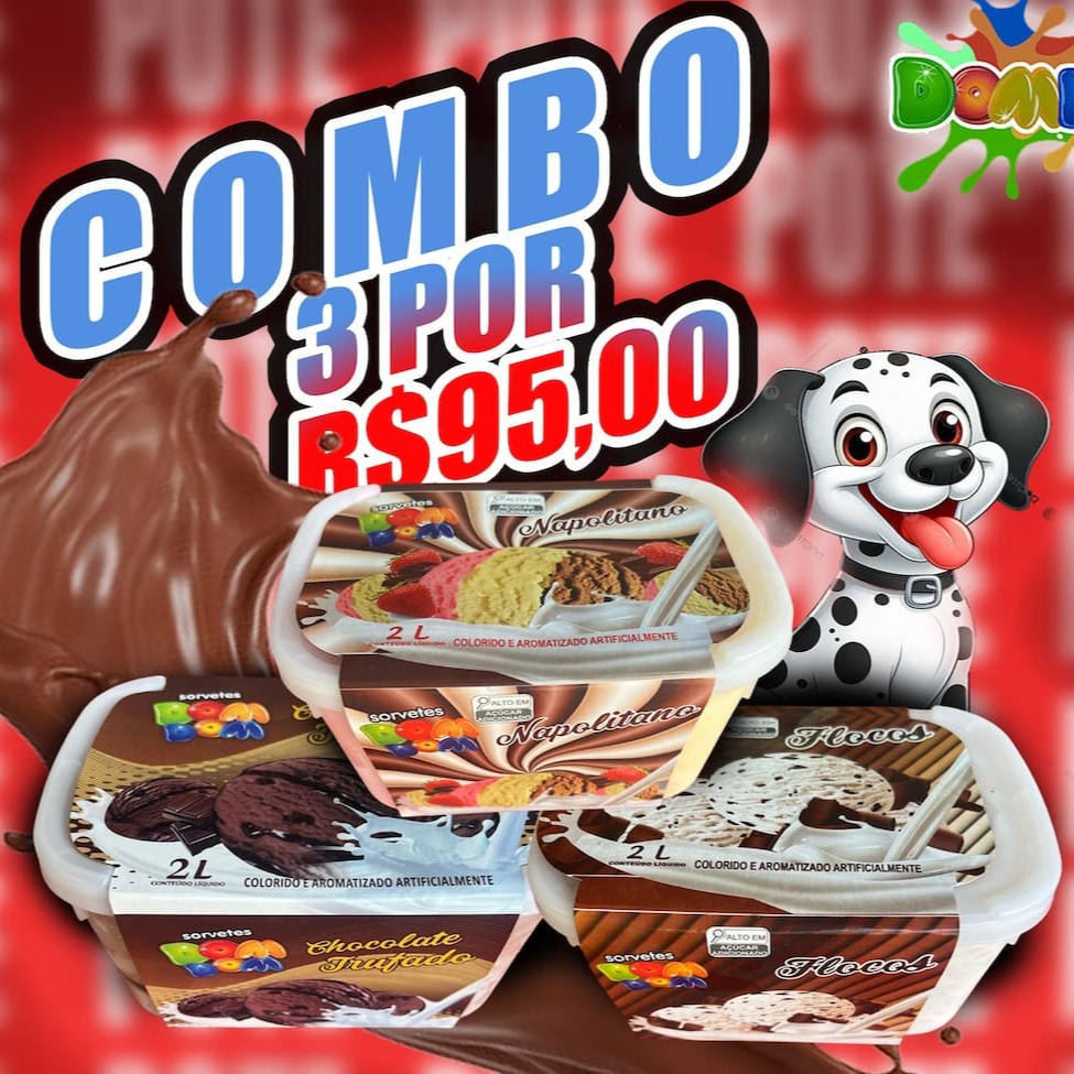 Leve 3 potes de sorvete de 2 litros por um valor mais em conta.