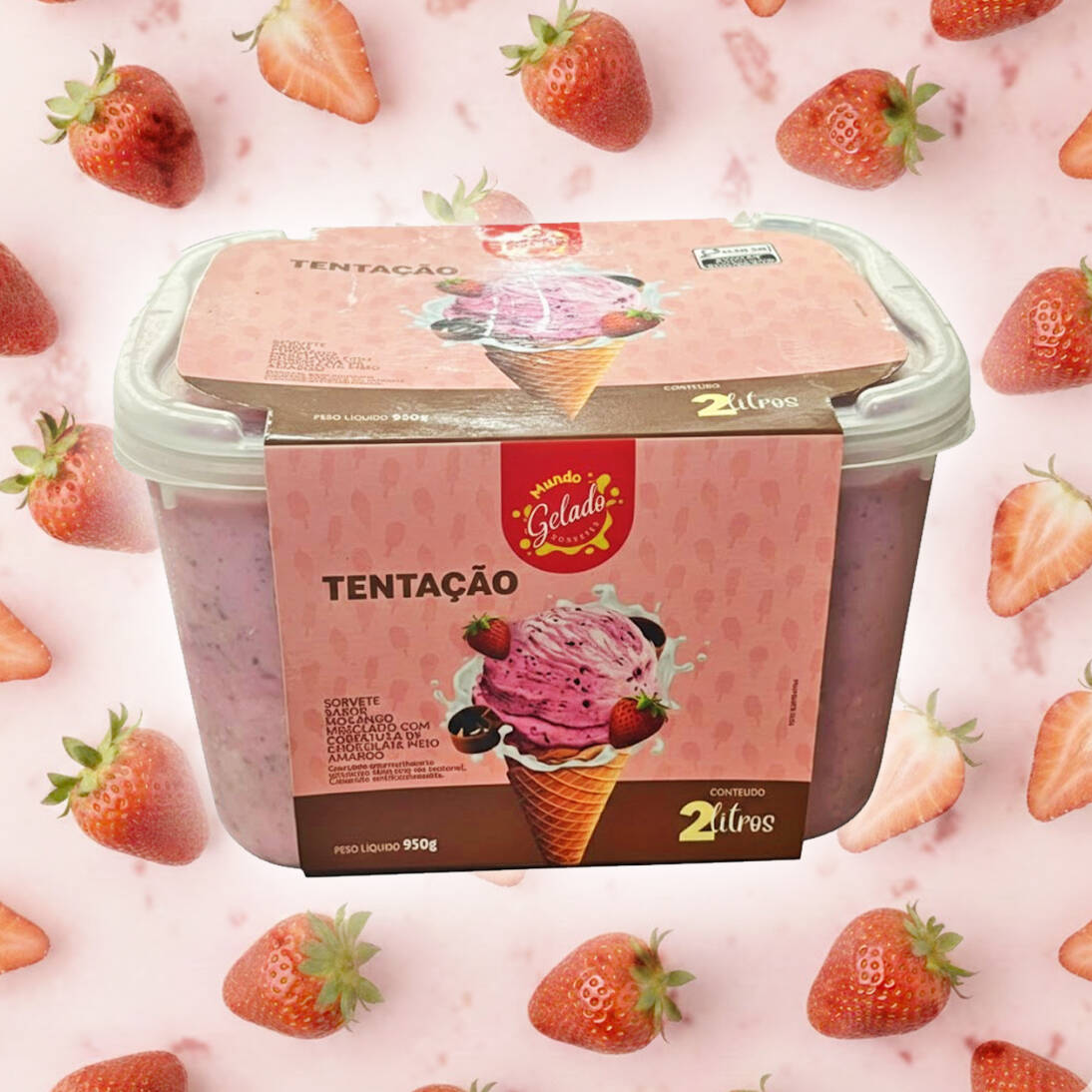 Sorvete Tentação - Morango Com Chocolate Pote 2 Litros
