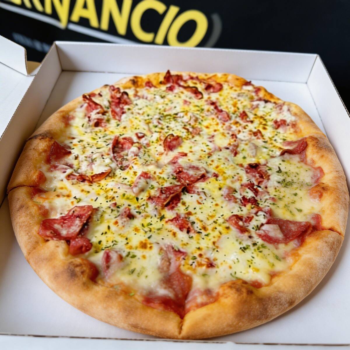 Maravilhosa pizza artesanal sabor toscana (calabresa coberta com mussarrela).