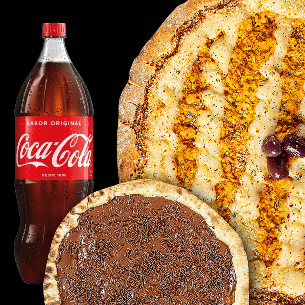 Combo Família - Pizza Grande 2 Sabores + Pizza Doce (4 Fatias) + Coca Cola 2 L