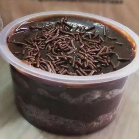 Delicioso bolo de pote feito de massa chocolate, recheado e coberto com chocolate trufado e finalizado com granulado.