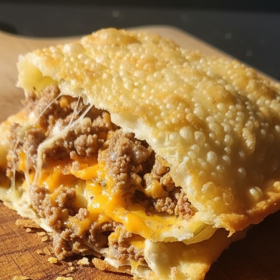 Pastel irresistível com recheio de carne moída e queijo derretido, perfeito para qualquer ocasião.