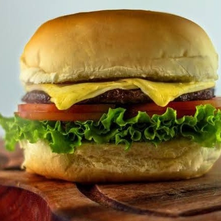Pão de hambúrguer, hambúrguer 90grs, queijo prato, alface, tomate. Feito na chapa.