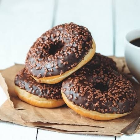 Donuts com cobertura de chocolate Massa super fofinha frita com cobertura de chocolate. Experimente esse doce tipicamente americano. Sucesso total. A decoração pode variar.