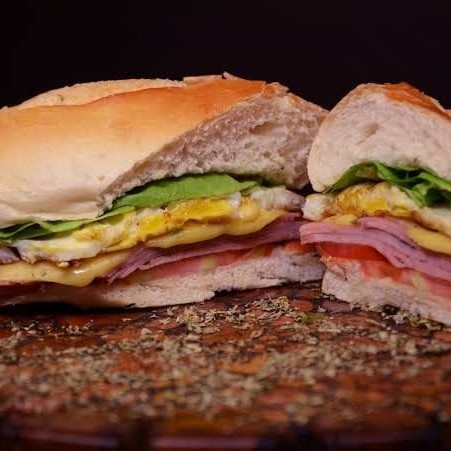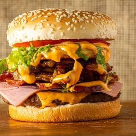 Pão de Hambúrguer, hambúrguer 90grs, queijo prato, presunto, ovo, bacon, salada e tomate.