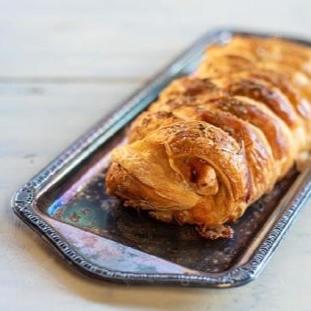 Feito com massa folhada e super recheado. Ideal para a família inteira. Aprox. 25 cm Sugestão de 8 a 10 fatias