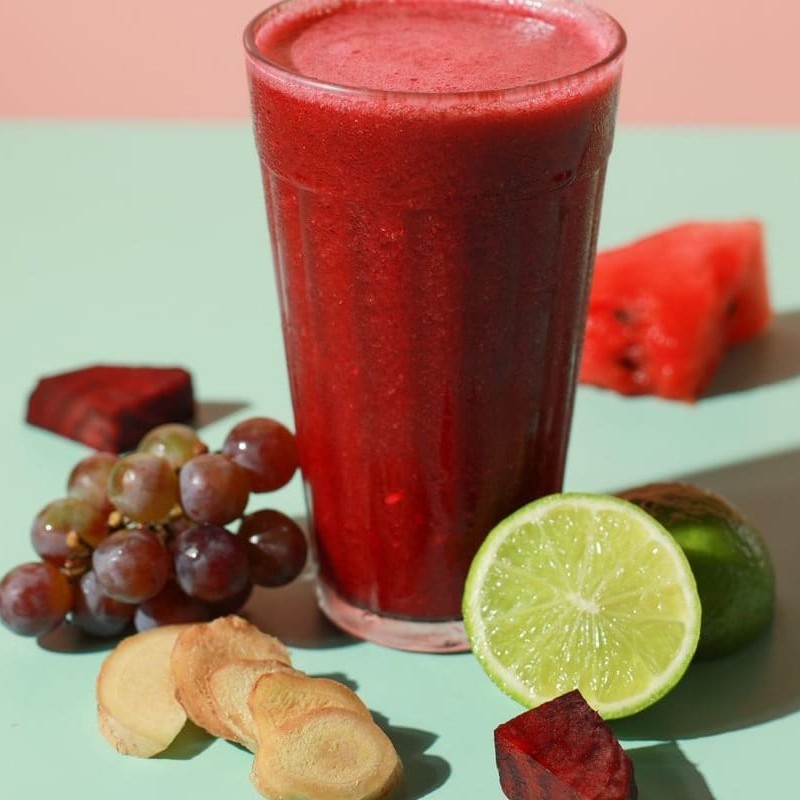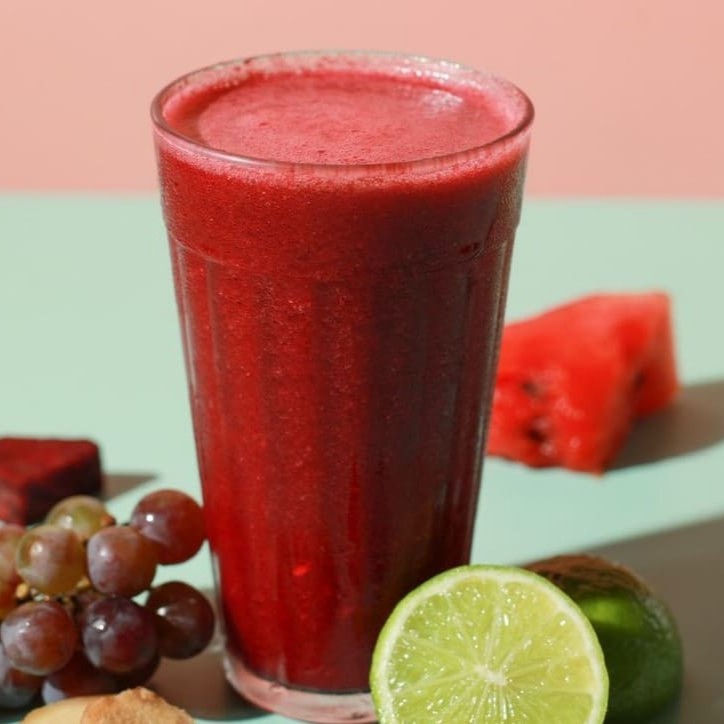 Energia: beterraba, gengibre, suco de limão, melancia e uva roxa.