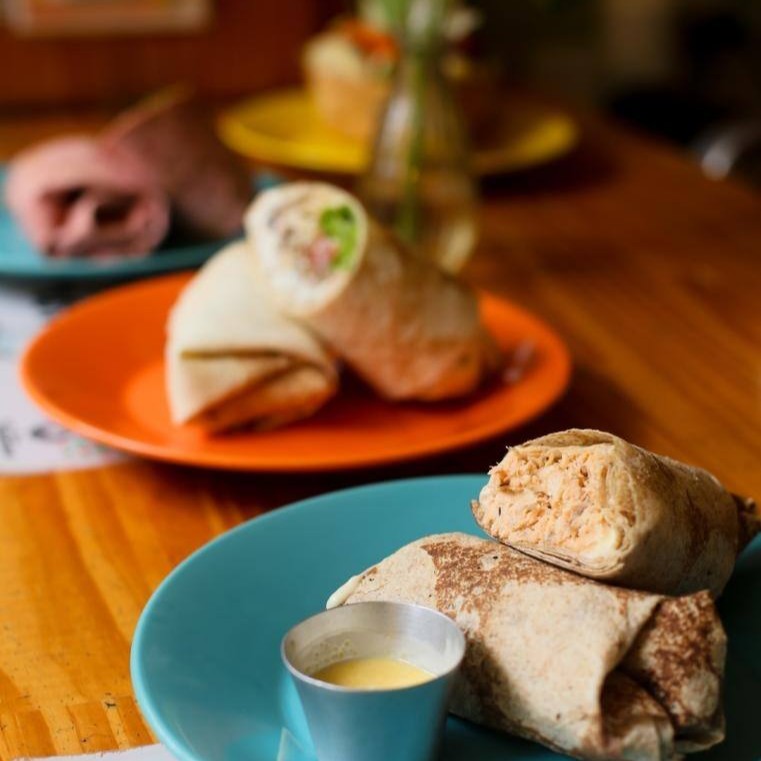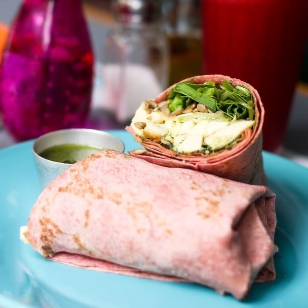 + salada (mix de folhas, tomate cereja, cenoura, beterraba, pepino, lascas de amêndoas e molho pesto.
