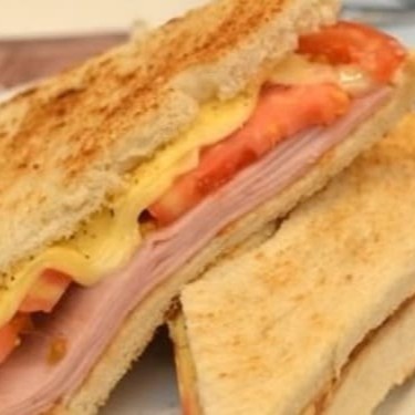 Misto quente, queijo mussarella e peito de perú no pão françês.