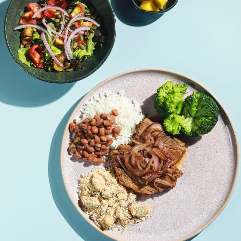 Saladinha verde de entrada + principal (à sua escolha) + Proteína (à sua escolha) + Guarnição (á sua escolha) + Sobremesa (à sua escolha).