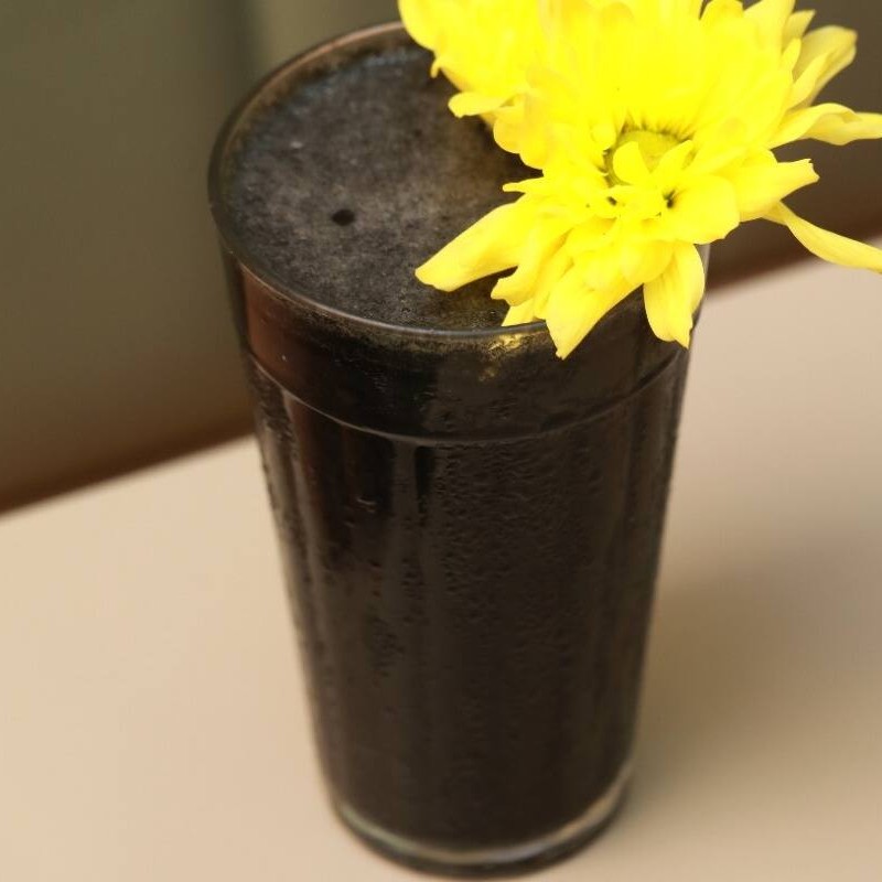 Carvão ativado, rúcula, limão siciliano, mel e gengibre.
