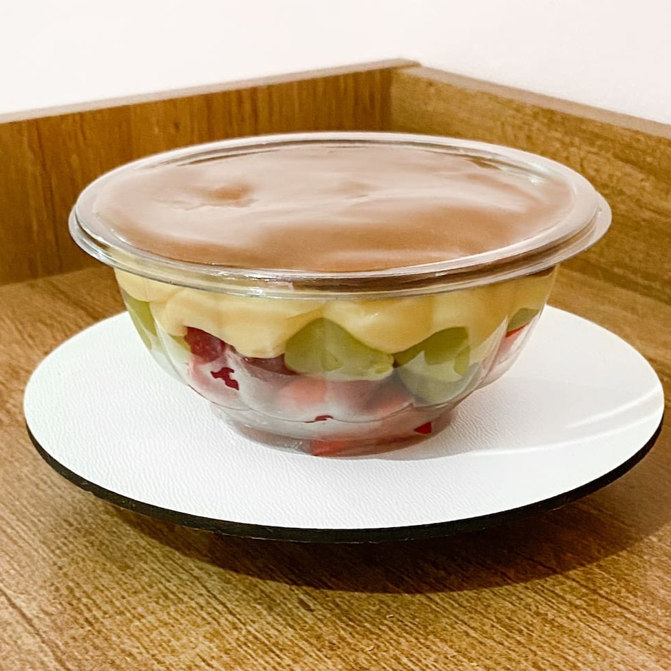 O Queridinho da Doçuras é composto por camadas de: morangos frescos picados, uva verde s/ semente, nosso delicioso brigadeiro de Ninho, coberto com ganache de chocolate ao leite. Aproximadamente 250g de pura doçura.
