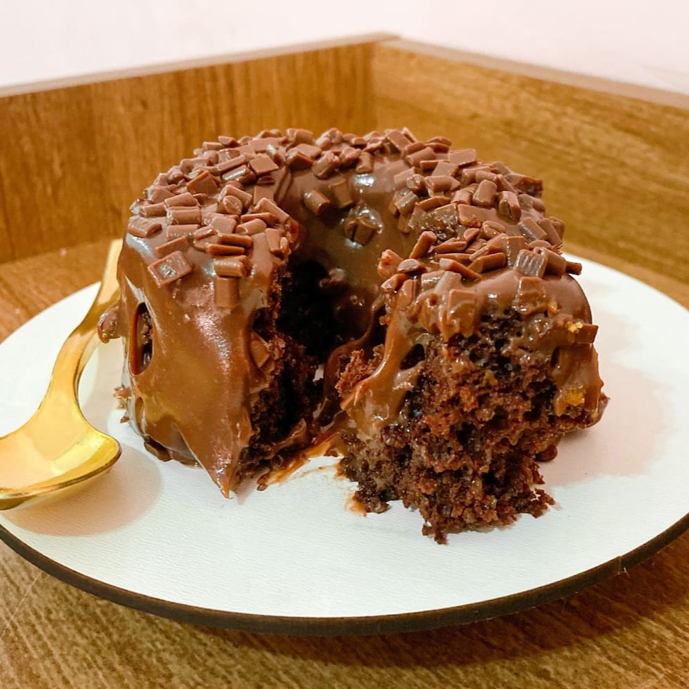 Massa fofinha de chocolate e um delicioso brigadeiro cemoso e granulé.