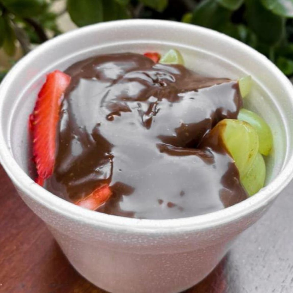 Frutas a sua escolha e uma deliciosa ganache de chocolate ao leite