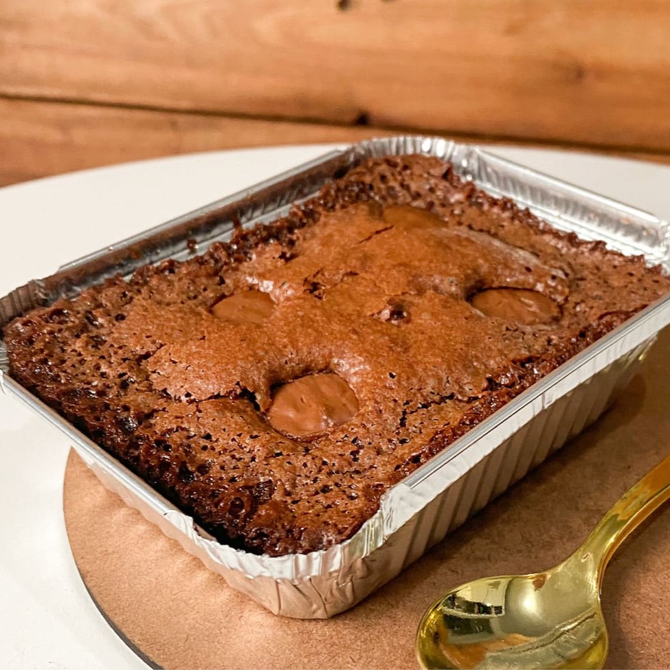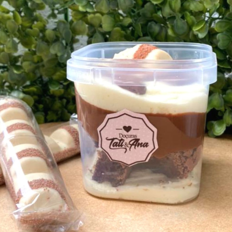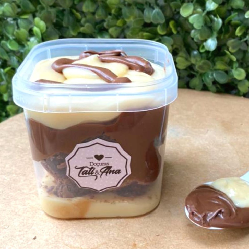 Pedaços de um delicioso brownie macio, camadas deliciosas do nosso creme especial d e Kinder, Nutella e Kinder bueno.Aproximadamente 440ml de pura doçura.