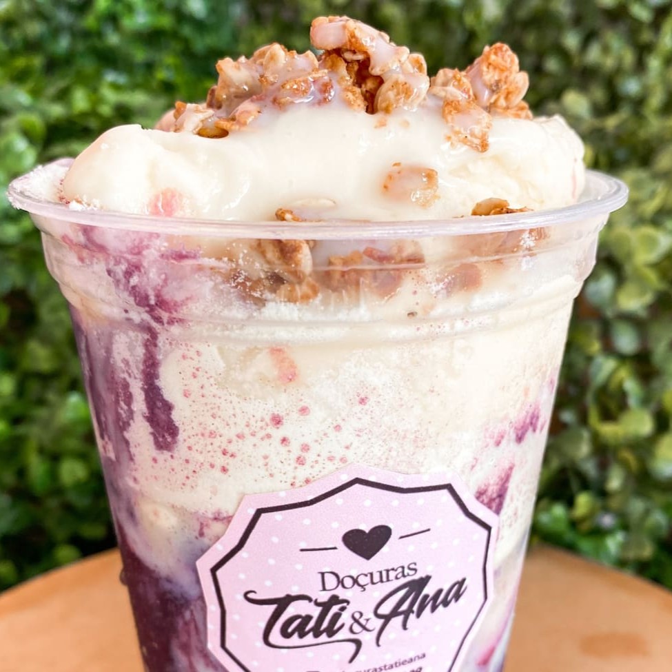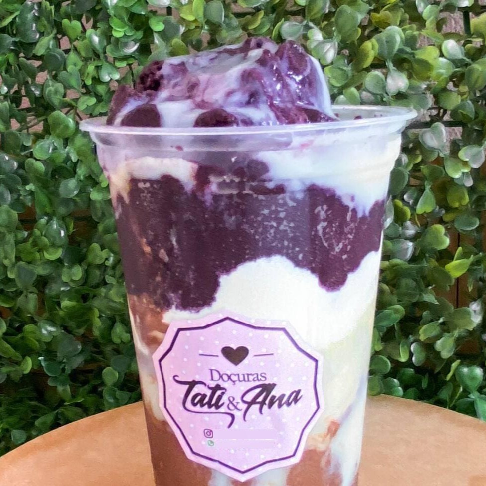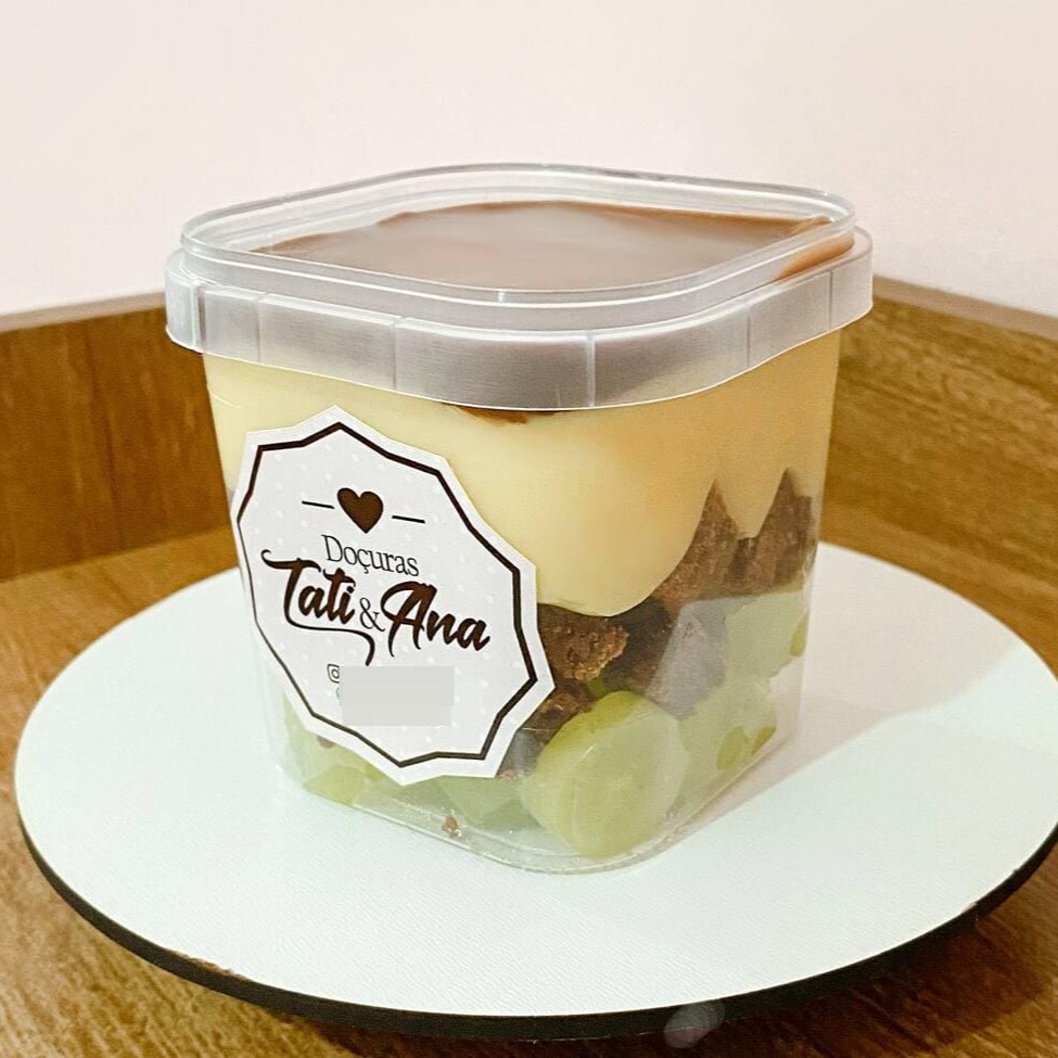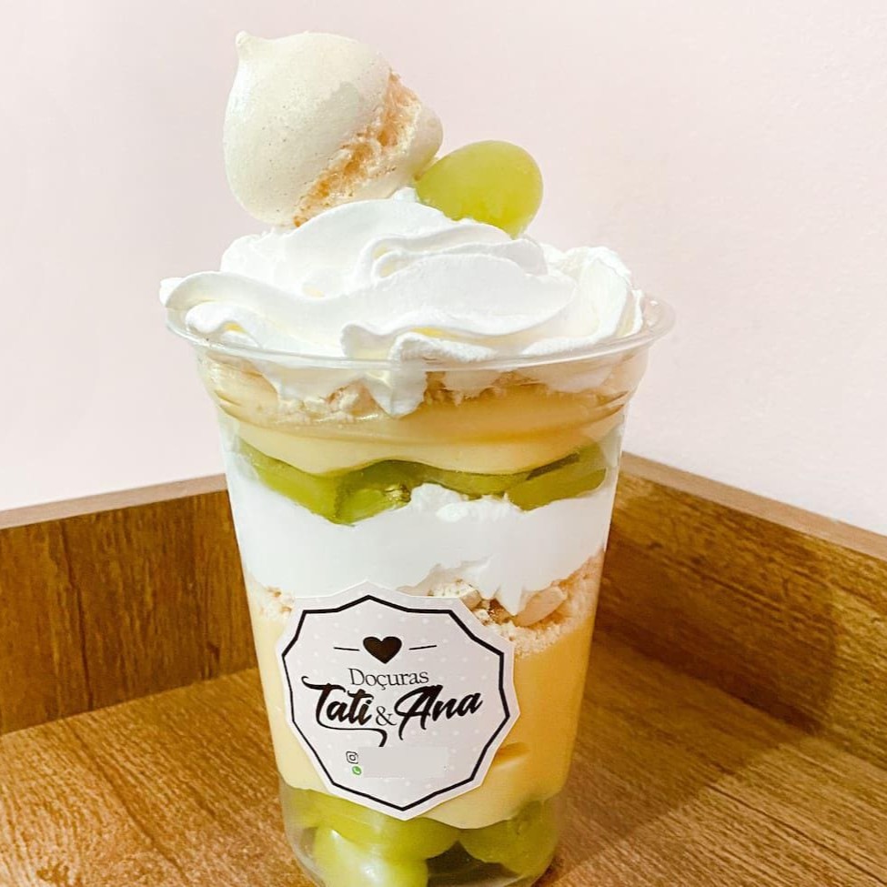 Nosso delicioso brigadeiro de Ninho, uvas verdes sem semente, camadas de chantilly e pedaços de suspiro. Aproximadamente 440ml de pura doçura.