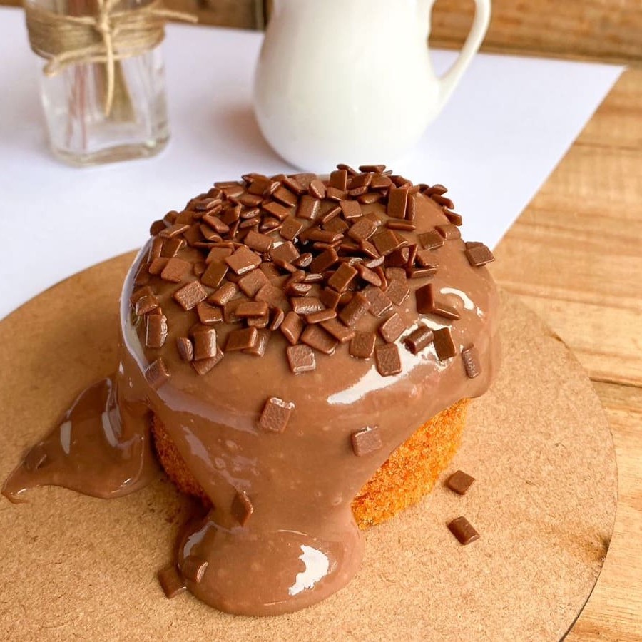 Vulcãozinho de cenoura fofinho coberto com delicioso brigadeiro cremoso, e granulado ao leite. Aproximadamente 130g de pura doçura.