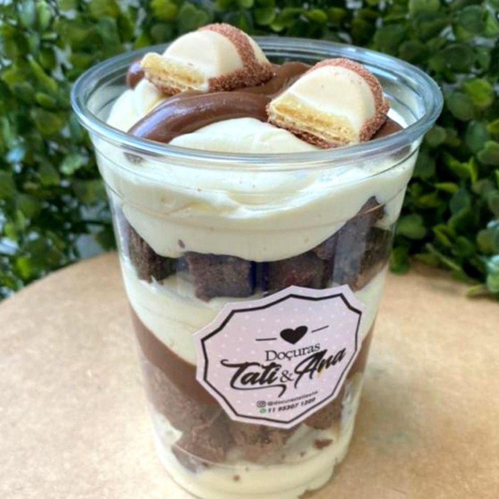 Pedaços de um delicioso brownie macio, camadas deliciosas do nosso creme especial d e Kinder, Nutella e Kinder bueno.Aproximadamente 300ml de pura doçura.
