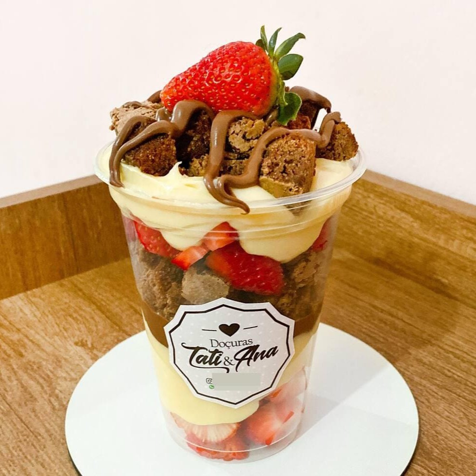 Pedaços de um delicioso brownie macio, com morango fresco e camadas deliciosas do nosso tradicional brigadeiro de Ninho e Nutella. Aproximadamente 300ml de pura doçura.