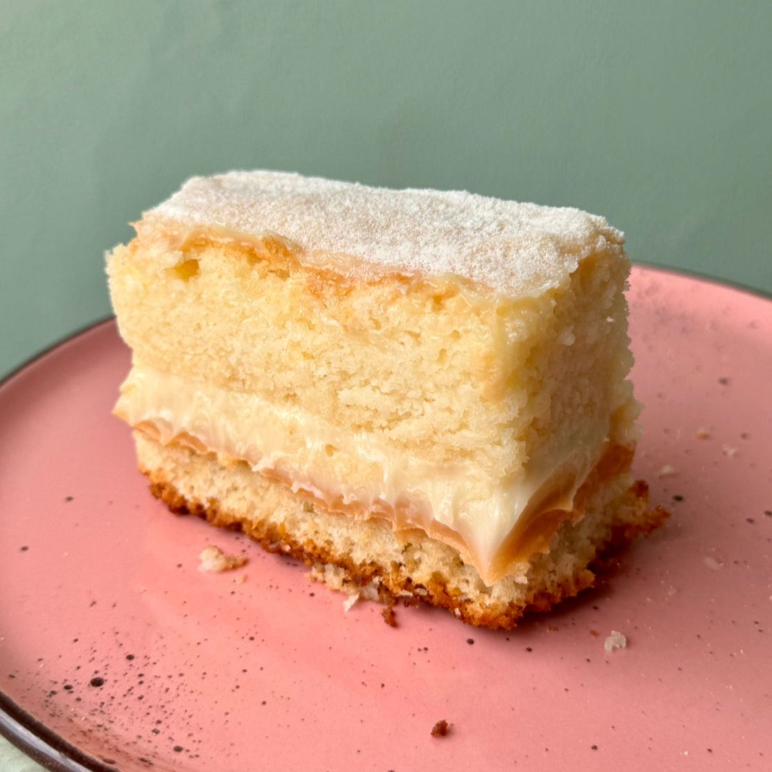 Bolo de massa branca molhadinha, recheado com nosso delicioso brigadeiro de Ninho e doce de leite cremoso, polvilhado com leite Ninho. Aproximadamente 150g de pura doçura.