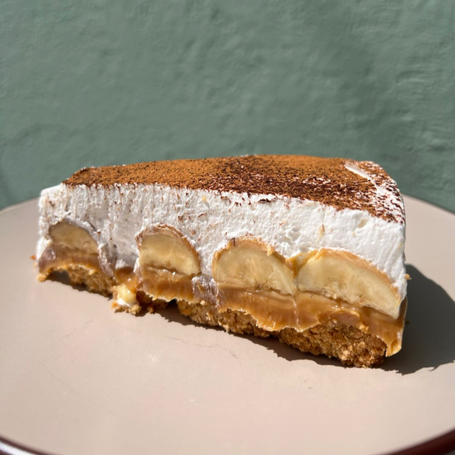 A deliciosa banoffee , com massa de biscoito, recheada com doce de leite cremoso e banana, coberto com chantilly e um toque de canela em pó na decoração. Aproximadamente 180 a 200g de pura doçura.