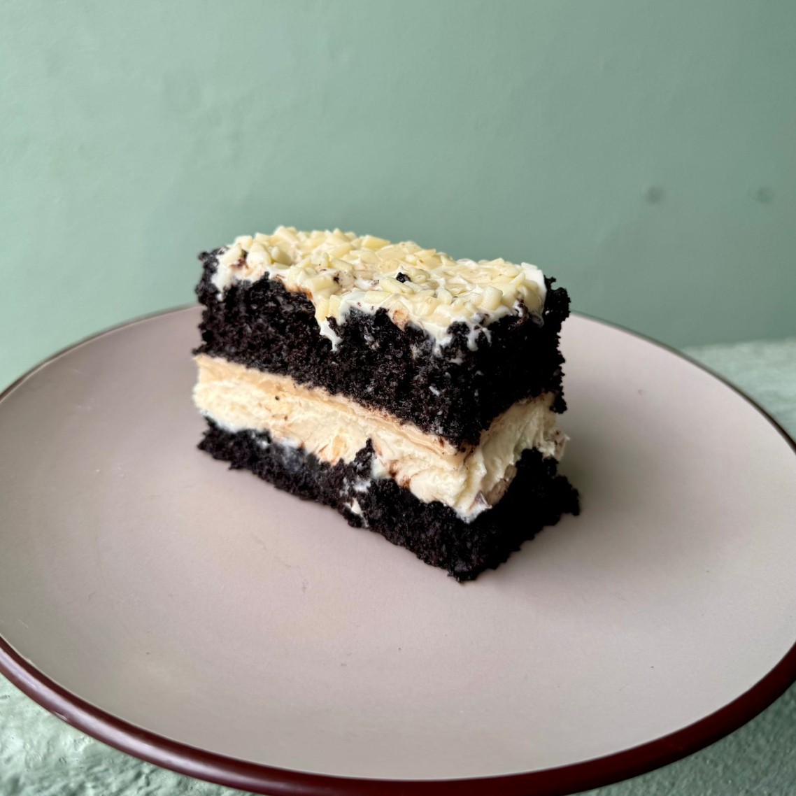 Bolo de chocolate molhadinho, recheado com nosso delicioso Prestígio e brigadeiro cremoso e, polvilhado com côco. Aproximadamente 150g de pura doçura.