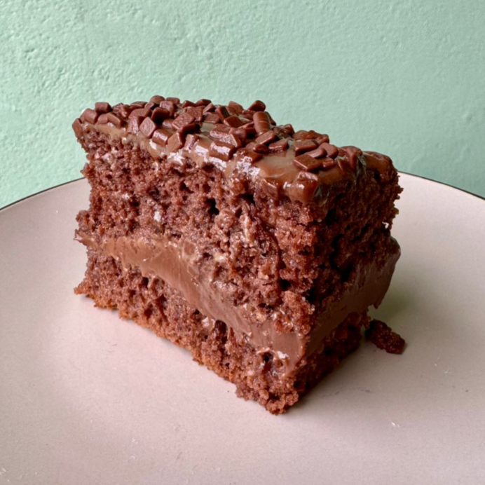Massa de chocolate com recheio de brigadeiro cremoso e granulado ao leite