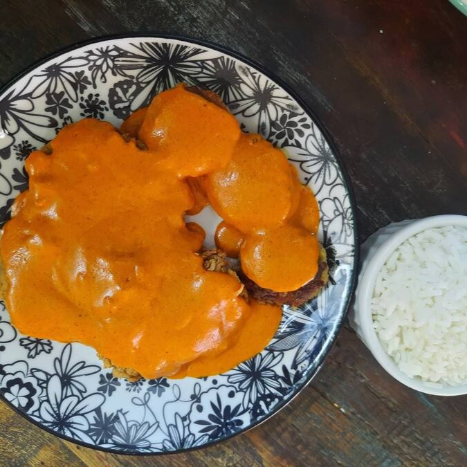 Um filé mignon empanado à milanesa crocante, servido com um molho cremoso de páprica defumada, com um toque picante que traz sofisticação. Acompanhado de rösti de batatas suíço dourado na manteiga ou batata rústica ou batata frita e arroz branco soltinho. Esse prato traz o equilíbrio perfeito entre sabores robustos e uma textura incrivelmente macia. Uma opção elegante para quem busca um prato completo e de sabor intenso.