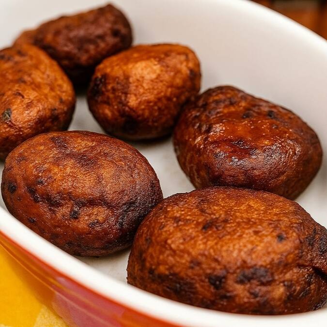 Uma autêntica receita alemã: almôndega de carne suína e bovina, preparada com bacon, cebola e um toque especial de especiarias aromáticas, cozida e frita na perfeição. Servida com uma porção de pão francês fresquinho, que complementa os sabores e garante uma refeição deliciosa e satisfatória. Uma verdadeira iguaria, ideal para quem busca o sabor autêntico da Alemanha.