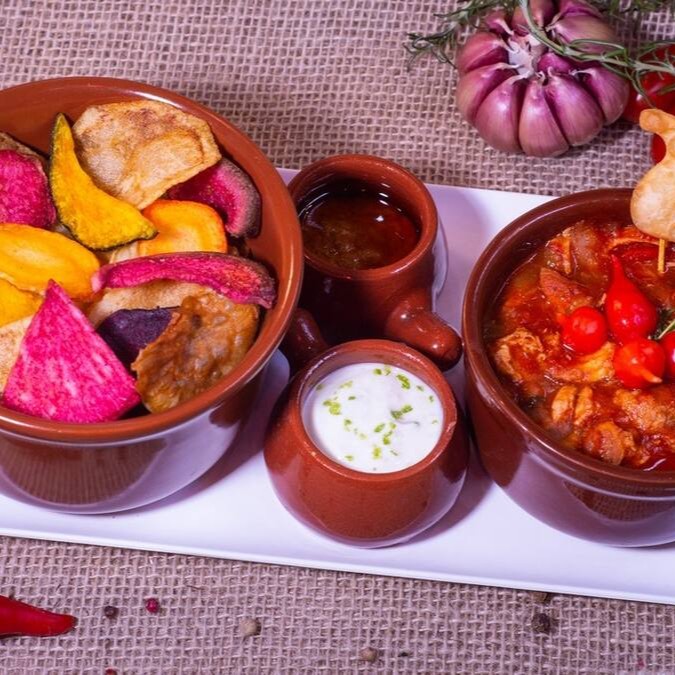 Um prato para quem gosta de sabor intenso e conforto! O Porko Loko Bakana traz pernil suculento desfiado, cozido lentamente com temperos especiais e especiarias selecionadas, garantindo maciez e um sabor marcante. Acompanha um mix de chips artesanais: Batata, batata doce, banana da terra e mandioquinha, tudo frito no ponto certo. Completa o prato um delicioso pão, creme azedo, e pimenta da casa. Uma combinação rústica, diferente e deliciosa, perfeita para compartilhar ou se presentear com uma porção de sabores.