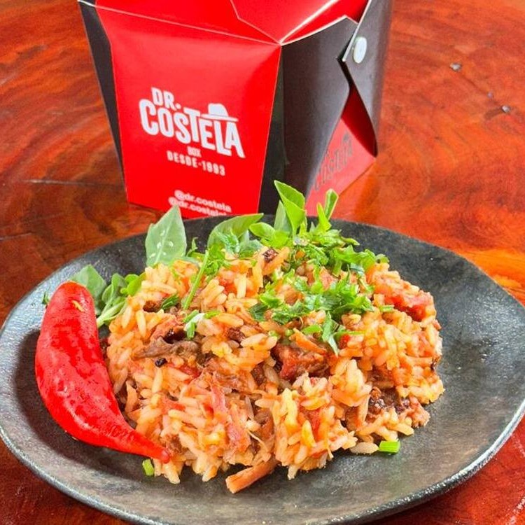 Refogado, cebola, alho, tomate cassé, costela desfiada, molho de costela cozida, arroz branco, salsinha e cebolinha. ++Sr. Clientes, não fazemos alterações ou troca no prato***