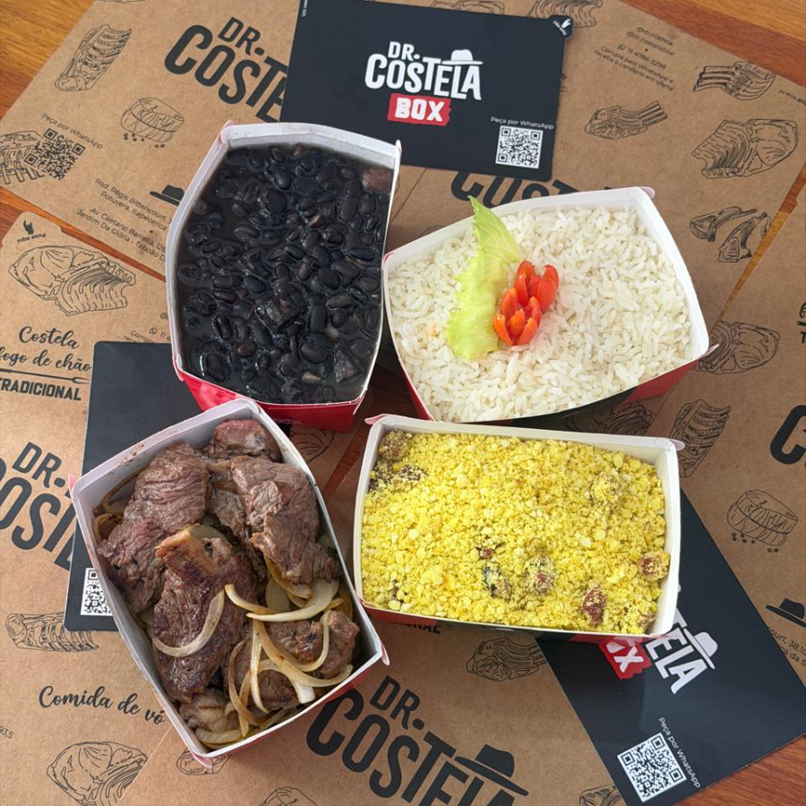 01 Box 500gr de Costela + 03 Acompanhamentos a escolher.