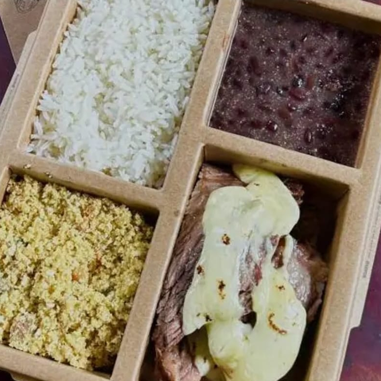 1 box 400g de alcatra acebolada + 01 box 400g Arroz branco, 01 box 400g Feijão Preto e 01 Box 200g Farofa. ++Sr. Clientes, não fazemos alterações no prato***